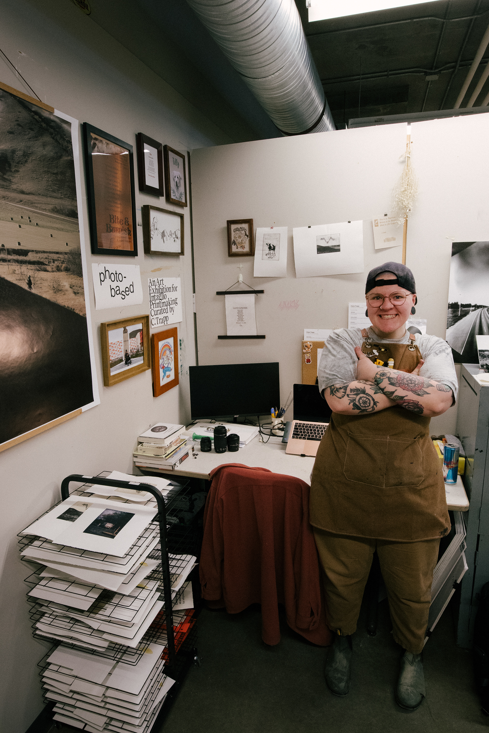 Ciara Trapp (she/her) is a queer photo-based artist and printmaker on Treaty 4 Territory working towards her BFA in Visual Arts with a minor in English at the University of Regina. Through reflexive, traditional, and experimental photo and printmaking methods, Trapp explores the intersections of material labour, land, resistance, and what it means to be a working-class settler on stolen land. Her work also explores process as a means for inner work. In particular, when dealing with anticipatory, collective, and disenfranchised grief. By offering her emotions and memories a place to live on paper or other matrices, especially through time-intensive techniques, she hopes to find some semblance of consolation and quietude for what she once carried.